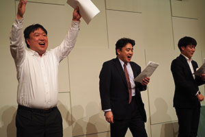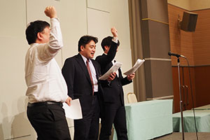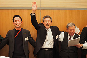 江戸川支部から阿部勲支部長(昭和49・法)・實方健副支部長(昭和49・法)・関口信一幹事長(昭和53・経済)