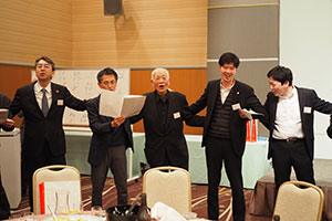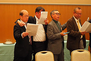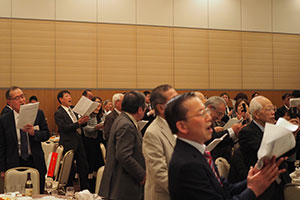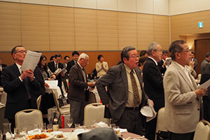 恒例の校歌・応援歌・惜別の歌を全員で合唱し散会しました。その後二次会は、ススキノのスナックで楽しい一時を過ごし
